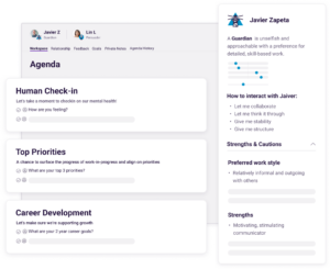 It connects the behavioural data already collected through The Predictive Index® with the daily routines that shape performance. Managers use it to plan one-to-ones, lead meetings, set goals, and recognise progress based on how each person works best.