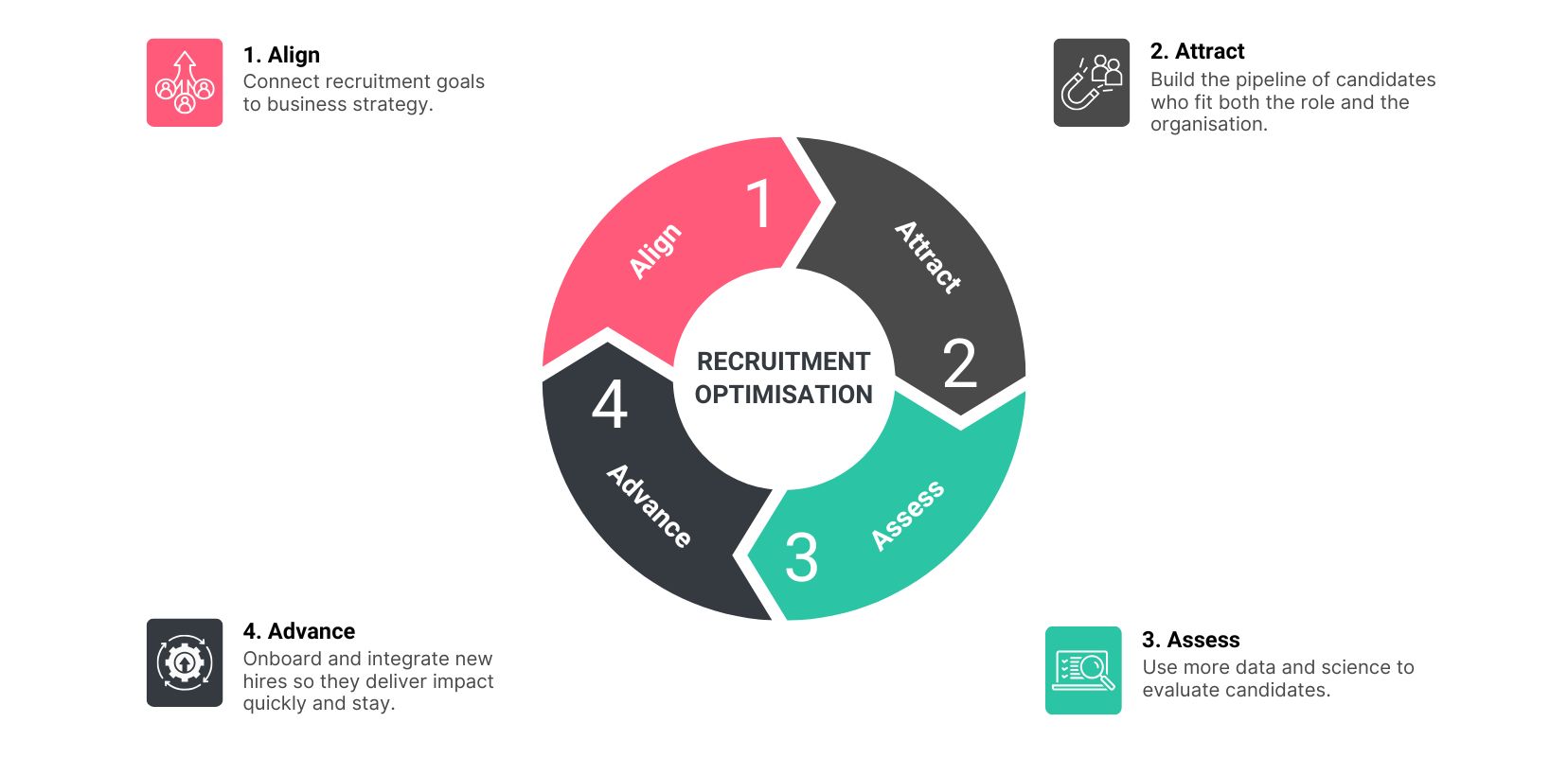 This month, I want to share with you how we use the software by The Predictive Index to change that dynamic. Using our 360 Recruitment Framework, building your recruitment strategy starts with Align. It is the moment where we align your recruitment strategy to your business strategy and create a clear hiring plan. Many teams begin by using an old job description that has been sitting in a drawer for years. This often lacks the context of where the business is heading right now.